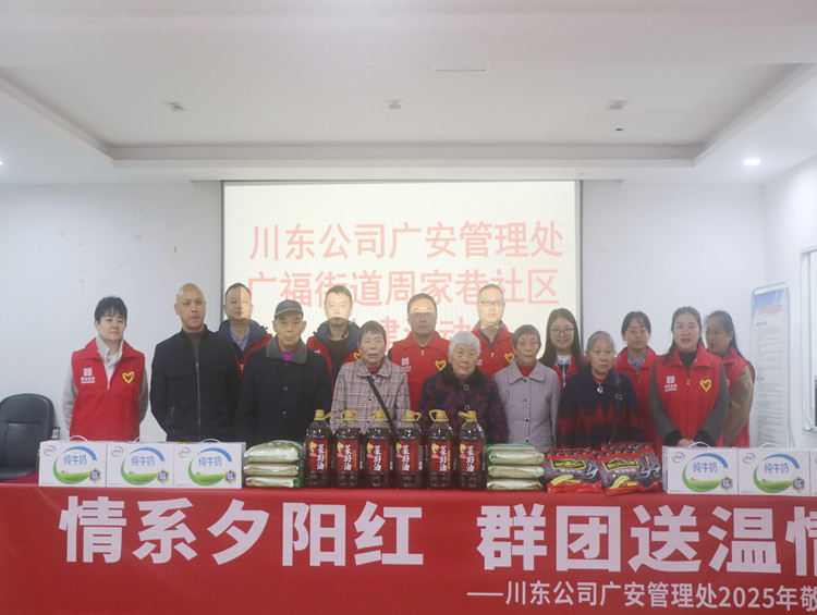 11月10日,川东公司广安管理处联合周家巷社区开展“情系夕阳红 群团送温情”敬老共建活动,以“文化陪伴+知识科普+暖心慰问”的多元服务模式,为辖区老年人送上全方位的温暖与关怀。