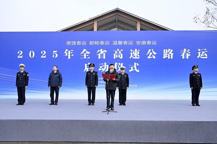 1月14日上午10时,2025年全省高速公路春运启动仪式在成德南高速金堂服务区成功举办。蜀道集团总工程师、川高公司党委书记、董事长黄兵出席并讲话。省公安厅交通警察总队总队长方万云、副总队长李异,省交通运输综合行政执法总队(厅高管局)总队长(局长)蒲朝勇、总工程师孙振,人保财险股份公司四川省分公司总经理张保华等参加启动仪式。