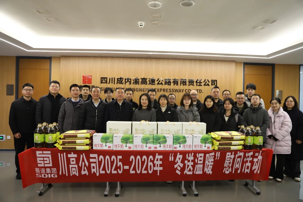 1月7日,川高公司副总经理仇宁涛一行赴九绵高速开展运营管理调研暨"冬送温暖"慰问。川高公司工程养护部部长李欣,绵九公司党委书记,董事长傅舰锋,党委副书记,董事,总经理杨自成,副总经理徐迪陪同。
