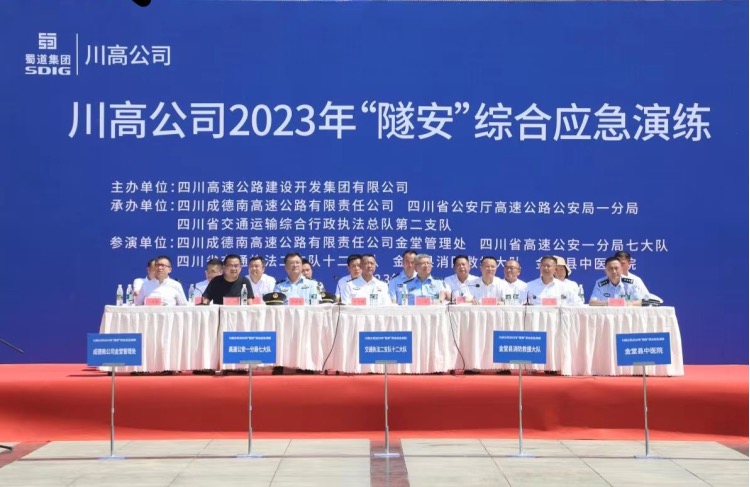 6月12日,川高公司在成德南高速公路组织开展2023年“隧安”综合应急演练。省交通运输厅高速公路管理局总工程师孙振、省公安厅高速公路公安局一分局局长侍玉强出席活动并讲话。