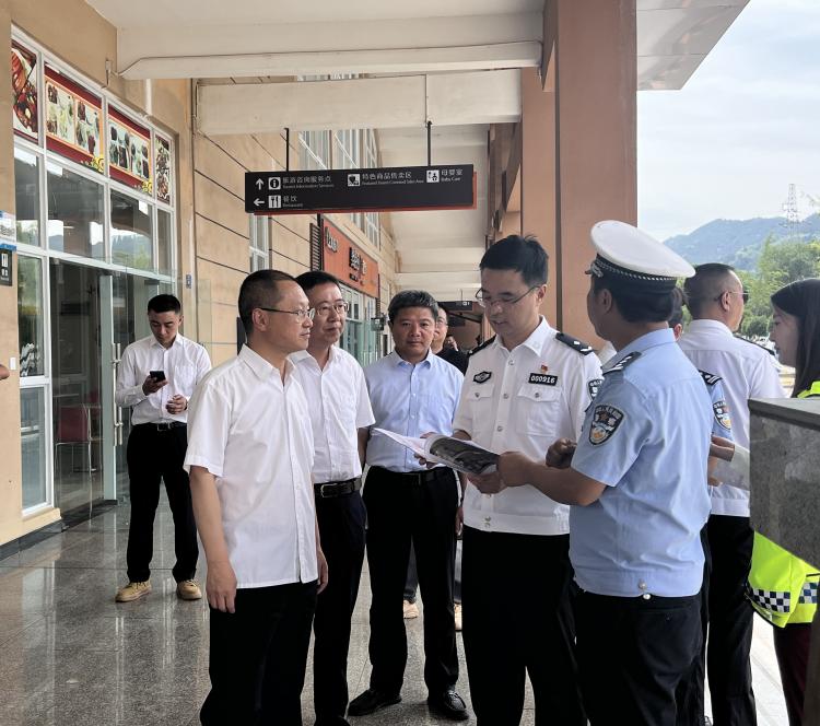 6月13日,四川省公安厅交通警察总队副总队长李异一行到成德南公司调研金堂服务区“四维一体”服务阵地建设,四川省公安厅交通警察总队高速公路机动勤务支队支队长杨兆全,副支队长王涛、四川省公安厅交通警察总队高速公路公安局一分局局长侍玉强、副局长洪飚,成德南公司党委书记、董事长闫平陪同。