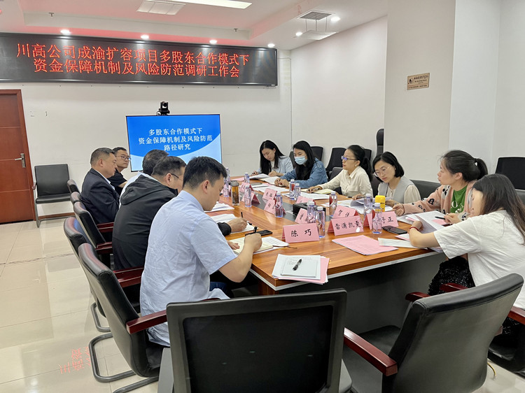 5月24日,川高公司财务总监黄璐一行赴成内渝公司开展多股东合作模式下资金保障机制及风险防范调研工作,成内渝公司党委书记、董事长、总经理赵飞舟,党委委员、财务总监徐智浩陪同调研。