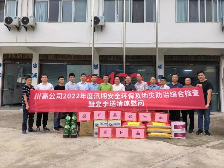 6月15日至16日,川高公司副总经理刘勇带队赴沿江公司开展2022年度汛期安全环保和地灾防治综合检查暨“夏季送清凉”慰问,沿江公司党委副书记、总经理何成,党委副书记、副总经理、工会主席雷德明,党委委员、副总经理黄红亚,安全总监李黎龙等陪同。