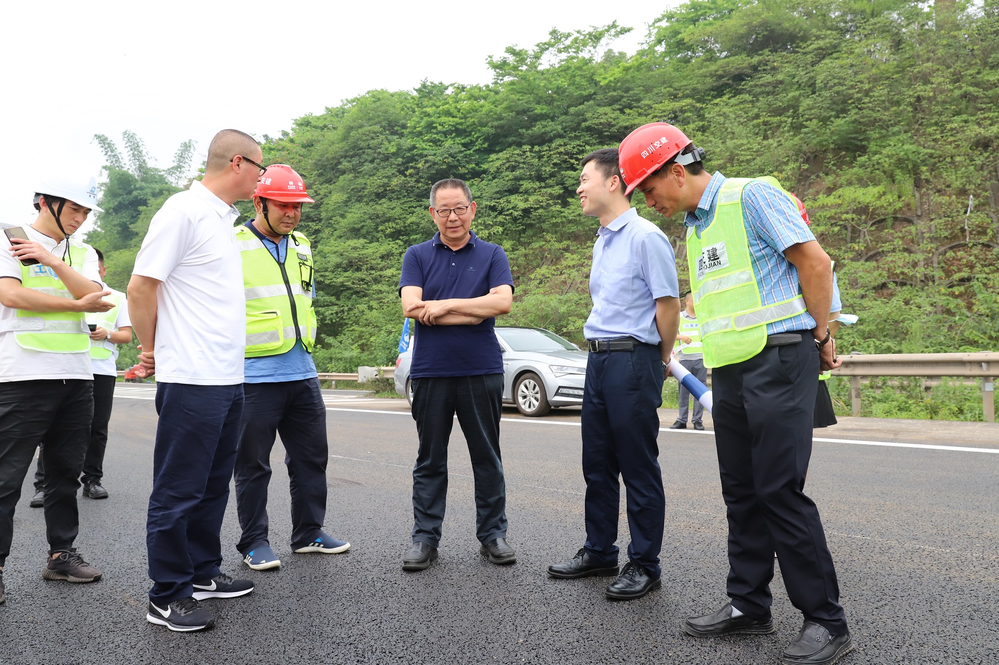 6月15日,川高公司党委副书记、董事、总经理王孝国赴成南高速扩容工程项目调研指导工程建设推进工作。成南公司党委书记、董事长苏开春陪同。