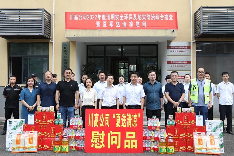 6月21日,川高公司党委委员、副总经理潘峰率队赴川南公司开展夏送清凉慰问暨防汛减灾和地质灾害防治工作督导检查。川南公司党委书记、董事长、总经理李理陪同。