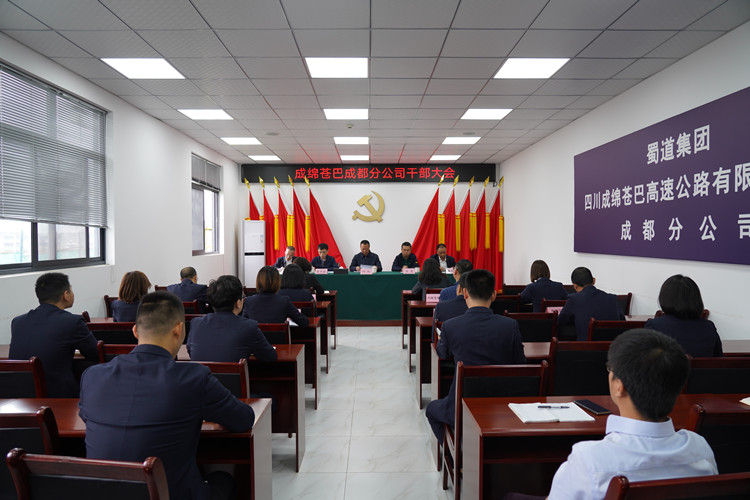 5月19日,成绵苍巴成都分公司召开干部大会。川高公司党委书记、董事长何刚,蜀道集团党委组织部李卓蔚出席会议。会议由成绵苍巴成都分公司党委书记唐承平主持。