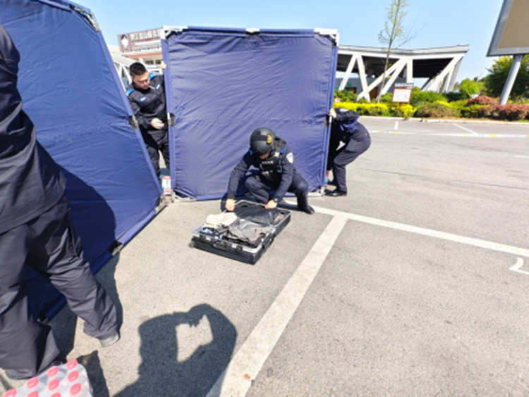 3月31日,成绵运管公司服务区管理处金山管理科接到关于可疑行李箱及监控异常的通知后,第一时间组织人员赶赴现场核查。该行李箱随意放置在罗江金山服务区广场,为确保服务区休憩司乘安全,金山管理科当即启动应急处置流程,组织安保人员设置隔离警戒、进行现场管控、调取监控排查溯源,并同步报高速公安、向金山派出所报警。