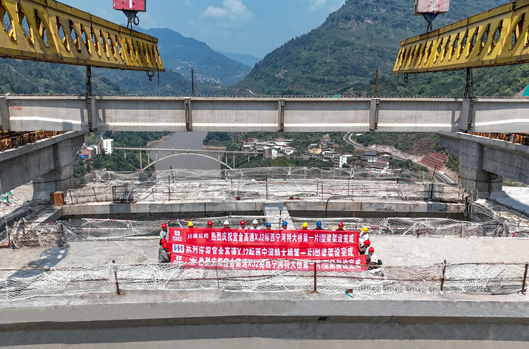 7月17日,由蜀道集团川高公司投资建设的沿江高速新金段西宁河特大桥主桥首片I型梁板安装顺利完成,标志着西宁河特大桥桥梁上部结构施工进入加速阶段。