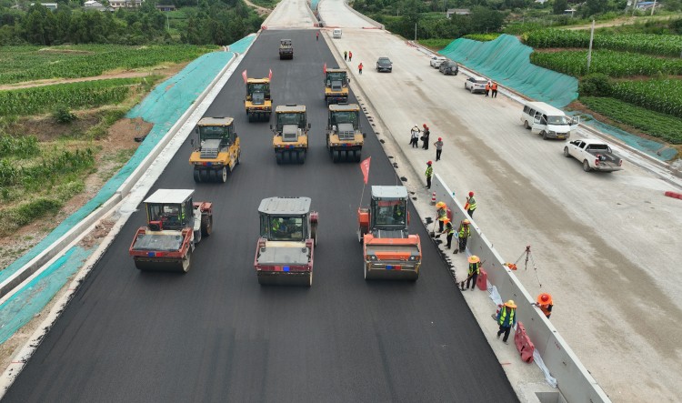 7月18日,京昆高速公路广元至绵阳段段扩容项目LM4标顺利完成沥青下面层试验段铺筑,为后续沥青路面大面积施工奠定坚实基础。本次铺筑的沥青下面层试验段位于K99+103~839段右幅,摊铺长度736米,宽度15.5米,设计为AC-20C中粒式沥青混凝土,厚度0.08米,共摊铺混合料约2310吨,采用非接触式平衡梁法工艺施工。