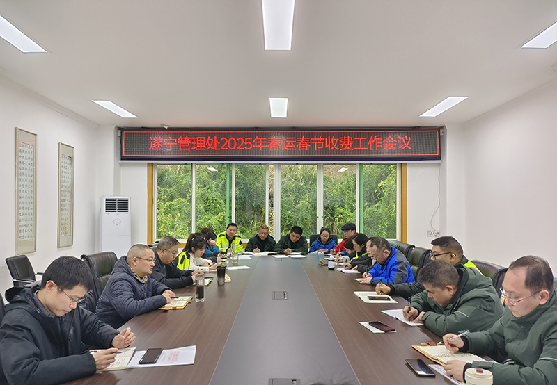 1月17日,成南公司遂宁管理处组织召开春运春节收费工作会,收费科全体人员,各收费站、监控分中心、稽查队、维护队负责人及相关人员参加会议。