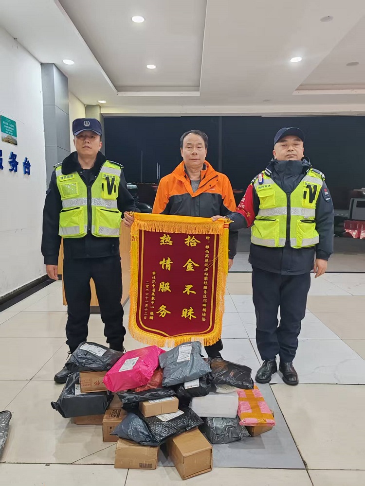 2026年1月12日凌晨5时,雅西高速荥经管理处路安大队队员在日常巡查中,发现应急车道内有一包快递包裹遗落。队员们第一时间将包裹妥善转移至巡逻车内,快速消除了道路通行安全风险。
