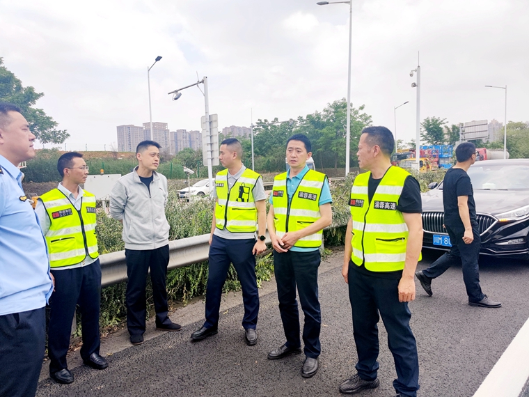 5月23日,省交通执法总队第四支队二级高级主办马斌一行督导仁沐公司路域环境整治推升工作,仁沐公司党委委员、副总经理陈晓亮等相关人员陪同。