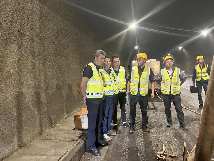 4月19日,川高公司工程养护部叶勇先到广南公司督导检查隧道专项检测工作,广南公司副总经理刘海泉、工程养护部、广元管理处相关人员陪同检查。
