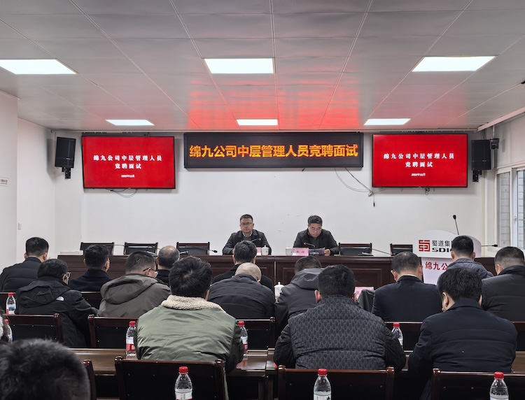 为加强干部队伍建设、优化人才梯队,12月30日,绵九公司在江油驻地202会议室召开中层管理人员竞聘面试会。会议由公司党委书记、董事长傅舰锋主持,公司领导班子成员、中层管理人员及职工代表参会,公开竞聘空缺的四个中层管理人员岗位。