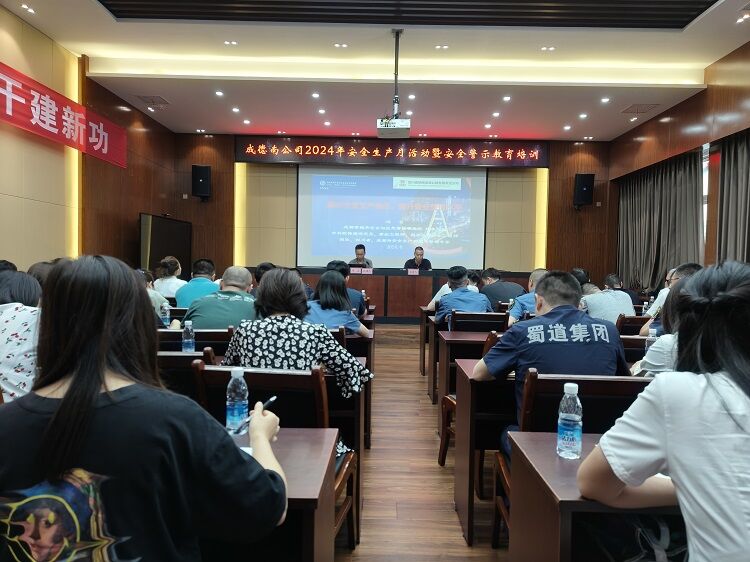 为深入贯彻落实习近平总书记关于安全生产的重要论述和批示指示精神,强化公司“人人讲安全,个个会应急”的安全意识,进一步夯实安全生产工作基础,根据公司“安全生产月”活动要求及年度教育培训计划,6月20日,成德南公司组织开展了2024年安全生产警示教育培训,公司党委委员、副总经理邝习东,各部门、管理处负责人以及全体专兼职安全员等共60余人参加。
