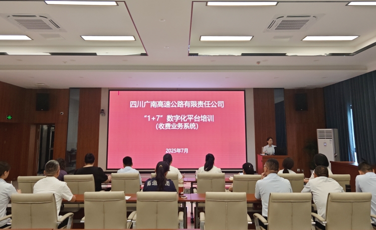 为有效提高收费站管理人员对蜀道集团运营高速公路“1+7”数字化平台的掌握理解与应用能力,2025年7月18日,广南公司组织开展“1+7”数字化平台(收费业务系统)培训,各收费站站级管理人员以及稽查代表共计20人参加培训。