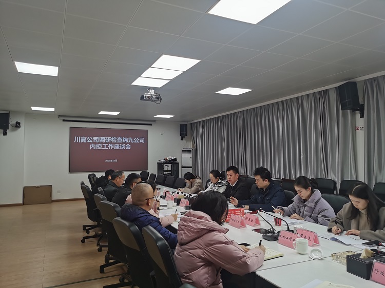 12月8日,川高公司监事会工作委员会委员周大川率队到绵九公司开展2021年度内控检查考核工作,绵九公司总经理傅舰锋、副总经理袁晓斌,公司相关部门负责人参加此次检查。