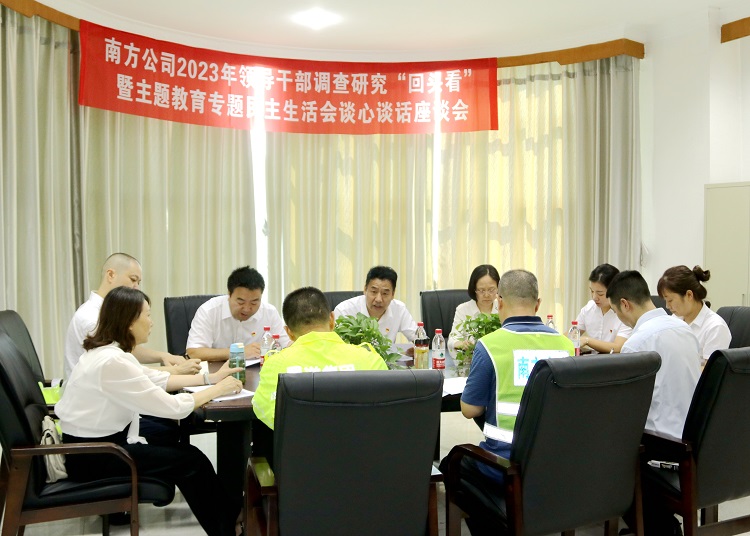 为推动学习贯彻习近平新时代中国特色社会主义思想主题教育走深走实,8月22日,南方公司党委书记、董事长、总经理兰波,党委副书记、副总经理、工会主席候选人何琛,党委委员、纪委书记张君带领相关部室负责人到泸州管理处和叙永管理处开展2023年领导干部调查研究“回头看”暨主题教育专题民主生活会谈心谈话活动。各管理处中层人员及部分党员代表参加活动。