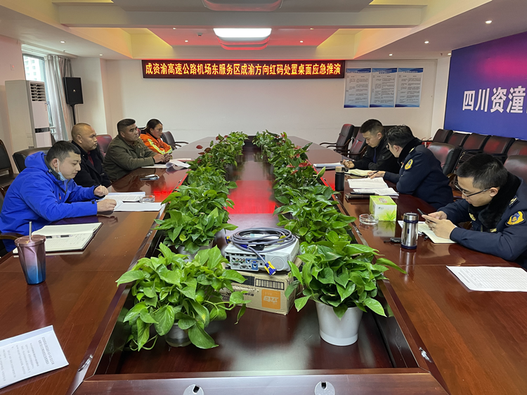 为强化常态化疫情防控工作,按照公司冬安行动和百日大会战工作方案要求,抓实春运春节保通保畅工作,1月28日,资潼公司在12楼会议室组织开展成资渝高速疫情防控桌面应急演练,公司安质环保部、合同管理部、高速执法、监控中心、机场东服务区相关负责同志参加演练。