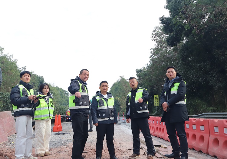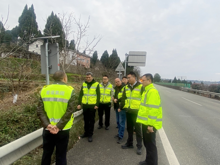 2026年1月5日,广南公司副总经理刘海泉率队,对公司辖区内道路交安设施显性隐患排查与整治工作进行了现场检查与督导。公司安全环保部、工程养护部及广元管理处相关负责人参加了本次检查。