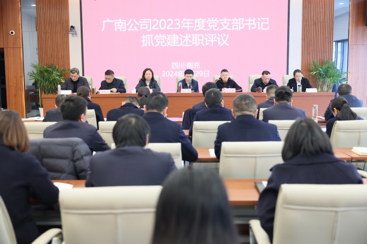 2024年2月29日,广南公司召开2023年度党支部书记抓基层党建工作述职评议考核会议。公司党委书记、董事长梁平同志主持会议并讲话,公司各党支部和党员代表参加会议。