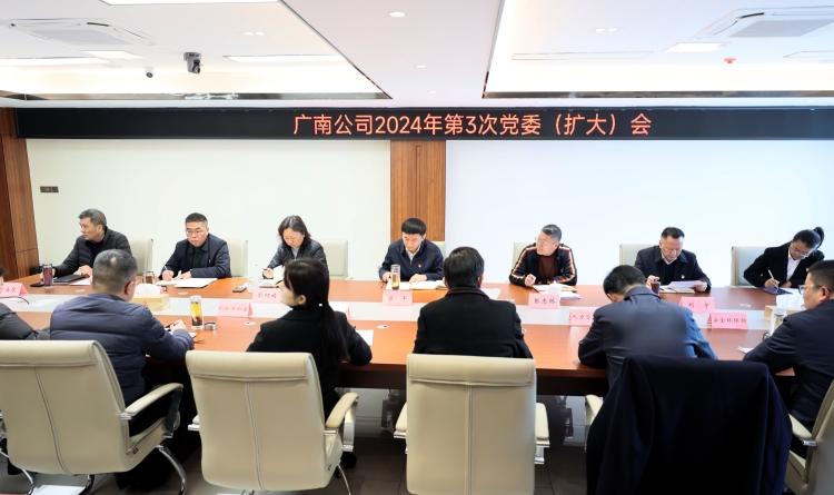 2月29日,广南公司组织召开2024年第3次党委(扩大)会,会议由广南公司党委书记、董事长梁平主持,公司全体领导班子成员、公司各部门、各管理处负责人等参加会议。