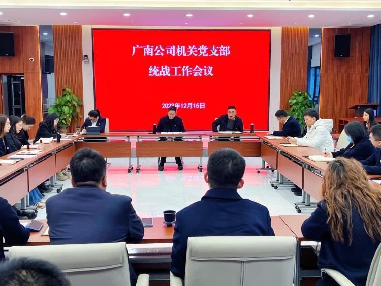 2023年12月15日上午,广南公司机关党支部组织召开统战工作会议,会议由机关党支部书记主持,机关支部全体党员及统战对象参加此次会议。