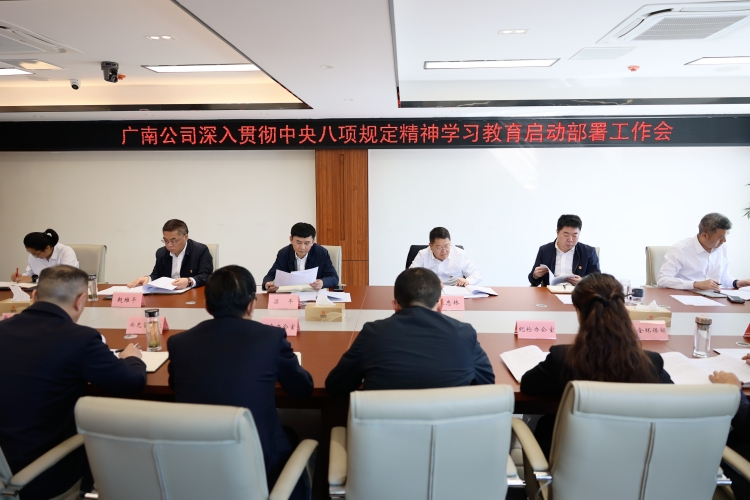 2025年3月26日,广南公司党委召开深入贯彻中央八项规定精神学习教育启动部署工作会,会议由公司党委书记、董事长梁平主持。公司领导班子全体成员,各部门、各管理处负责人参加会议。