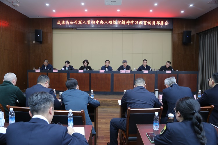 3月26日,成德南公司召开深入贯彻中央八项规定精神学习教育动员部署会,认真学习习近平总书记关于深入贯彻中央八项规定精神学习教育的重要指示精神,研究推进成德南公司学习教育工作措施。成德南公司党委书记、董事长闫平主持并作讲话。
