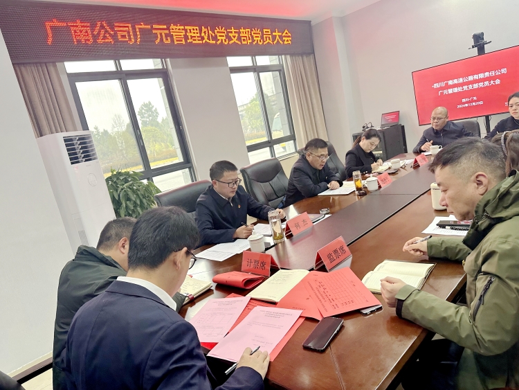 12月20日,广南公司广元管理处党支部召开党员大会,选举产生了新一届支部委员会。公司党委委员、副总经理、工会主席赵维平出席会议并讲话,公司党委组织部(党委宣传部)副部长郑婷婷、广元管理处党支部全体党员参加了会议。
