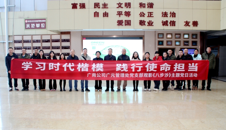 为进一步学习宣传贯彻习近平生态文明思想,大力弘扬“时代楷模”精神,引导和激励全体干部职工践行初心使命,争当先锋模范,凝聚干事创业的精神力量,11月27日,广南公司广元管理处党支部组织全体党员、发展对象和职工代表30余人开展了“学习时代楷模 践行使命担当 ”主题观影党日活动,集体观看了生态文明主旋律电影《八步沙》。