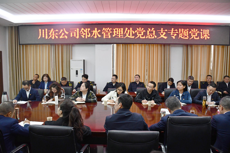 为深入学习贯彻习近平新时代中国特色社会主义思想,进一步加强党建与业务相互融合,相互促进,11月6日,川东公司副总经理何子牛以《党建引领,业务融合,共铸企业高质量发展》为题,到邻水管理处讲授主题教育专题党课。公司运营管理部、运行调度中心、邻水管理处全体党员参加听授党课。