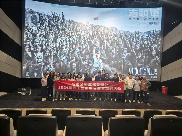 为加强职工爱国主义教育、增强职工思想政治引领,激发职工群众的创新精神和奋斗意志,10月29日成都管理处分工会组织开展2024年职工爱国主义教育观影活动,管理处全体职工分批次观看了爱国主义题材影片《志愿军:存亡之战》。
