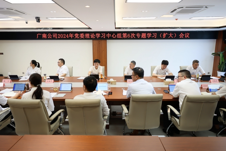 2024年8月28日,广南公司召开2024年党委理论学习中心组第6次专题学习(扩大)会议。会议由公司党委书记、董事长梁平主持,公司领导班子,各部门、管理处负责人参加会议。