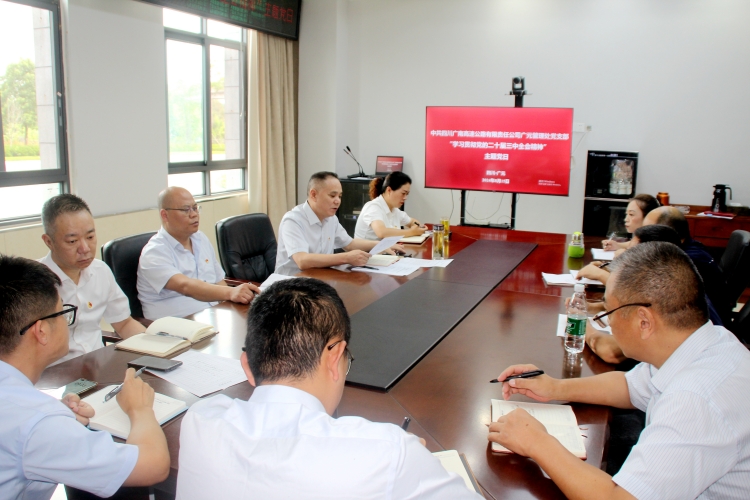 为深入学习贯彻党的二十届三中全会精神,教育引导广大党员不断提高政治自觉、思想自觉和行动自觉,8月15日,广南公司广元管理处党支部组织开展“学习贯彻党的二十届三中全会精神”主题党日活动,支部全体党员参加。