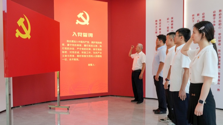 为更好地教育引导新党员坚定理想信念,不忘入党初心、牢记党员身份。8月21日,川西公司组织4名新党员在“五色先锋”党性教育基地进行入党宣誓仪式。