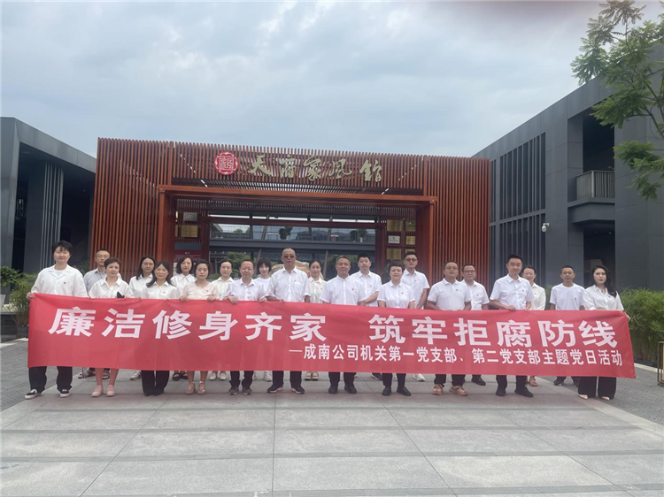为进一步深化勤廉文化建设,增强国有企业党员干部廉洁自律意识,廉洁修身、廉洁齐家,筑牢拒腐防变思想防线,8月15日,成南公司机关第一、第二党支部赴天府家风馆开展了“廉洁修身齐家 筑牢拒腐防线”主题党日活动。