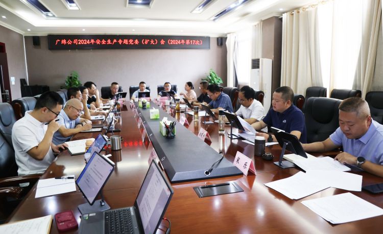 8月16日上午,广绵公司在驻地210会议室召开安全生产专题党委(扩大)会议。会议由公司党委书记、董事长熊朝家主持,公司领导班子,各部门及代表处负责人参加会议。