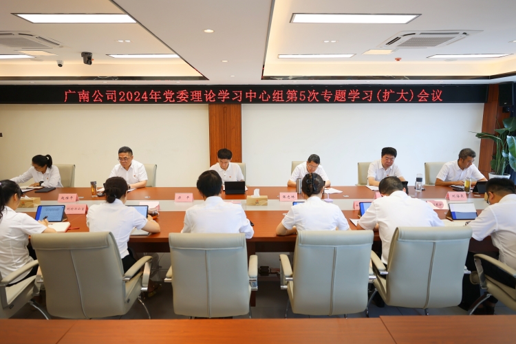 2024年7月24日,广南公司召开2024年党委理论学习中心组第5次专题学习(扩大)会议,会议由公司党委书记、董事长梁平主持,公司领导班子,各部门、管理处负责人参加会议。