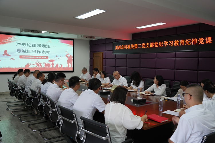 为深入学习贯彻习近平总书记关于纪律建设的重要论述,推动川西公司党纪学习教育走深走实,7月25日,川西公司党委委员、纪委书记马光明到基层党建工作联系点--公司机关第二党支部讲授纪律教育专题党课并开展集体廉政谈话。