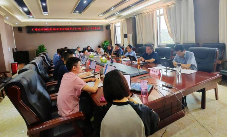 7月12日,广绵公司在210会议室召开了2024年第4次党委理论学习中心组(扩大)专题学习会议,会议由党委书记、董事长熊朝家主持,公司领导班子成员及各部门、代表处负责人参加学习。