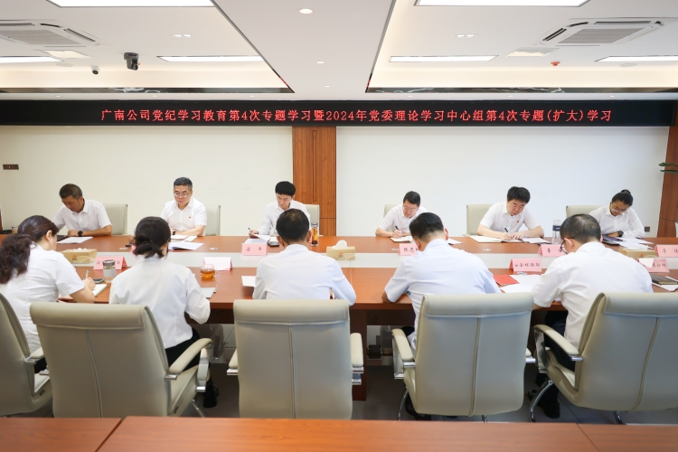 2024年6月27日,广南公司召开党纪学习教育第4次专题学习会暨2024年党委理论学习中心组第4次专题学习(扩大)会议。会议由公司党委书记、董事长梁平主持,公司领导班子,各部门、各管理处负责人参加会议。
