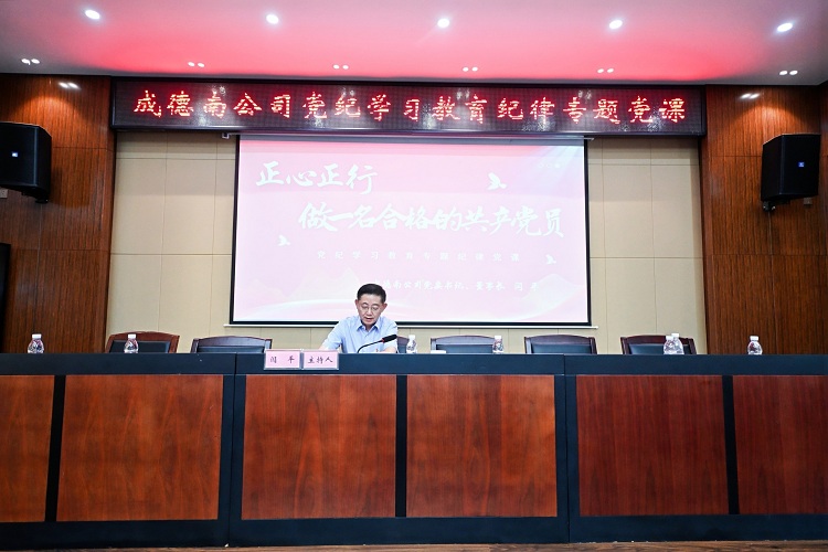 为深入学习贯彻习近平总书记关于党纪学习教育的重要讲话和重要指示精神,推动党纪学习教育走深走实,6月27日,成德南公司党委书记、董事长闫平以《正心正行,做一名合格的共产党员》为题讲授党纪学习教育纪律党课。公司领导班子、全体中层、各支部书记、党员代表参加学习。