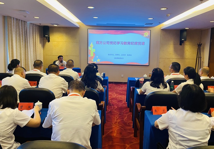 6月24日,南方公司党委书记、董事长、总经理陈四来以《内化于心增定力,外化于行知敬畏》为题讲授党纪学习教育纪律党课。公司党委班子成员,各党支部党务工作者、党员及业务骨干代表共30人参加学习。