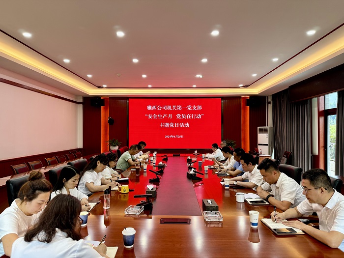 2024年6月是第23个全国“安全生产月”,为认真贯彻落实习近平总书记关于安全生产的重要论述和相关指示精神,营造“人人讲安全、个个会应急”的浓厚氛围,6月25日,雅西公司机关第一党支部开展“安全生产月 党员在行动”主题党日活动,立足岗位职责,扎实推进“安全生产月”活动,为公司建设创造安全稳定环境。