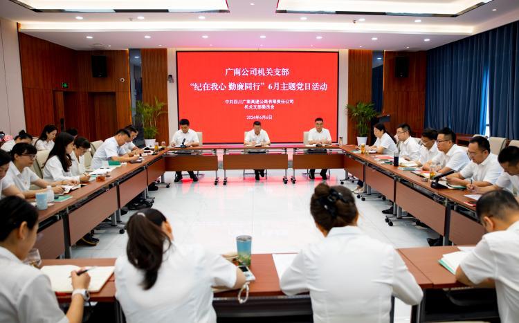 为认真落实中央、省委、蜀道集团、川高公司党委和广南公司党委对党纪学习教育的安排部署,推动党纪学习教育走深走实,6月6日,广南公司机关党支部组织开展了“纪在我心 勤廉同行”主题党日活动暨廉政警示教育,机关支部全体党员、预备党员、入党积极分子参加活动。