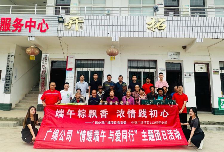 6月6日,在端午佳节来临之际,广绵公司团委、广绵项目党支部及中铁广绵项目LJ2标党支部赴昭化区红岩镇联合开展“端午粽飘香 浓情践初心”慰问活动。