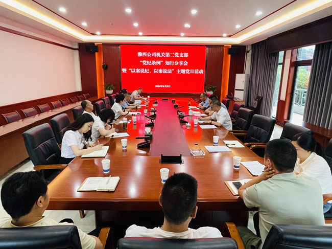6月5日,雅西公司机关第二党支部组织开展“党纪条例”知行分享会暨“以案说纪、以案说法”主题党日活动,机关第二党支部书记主持会议。