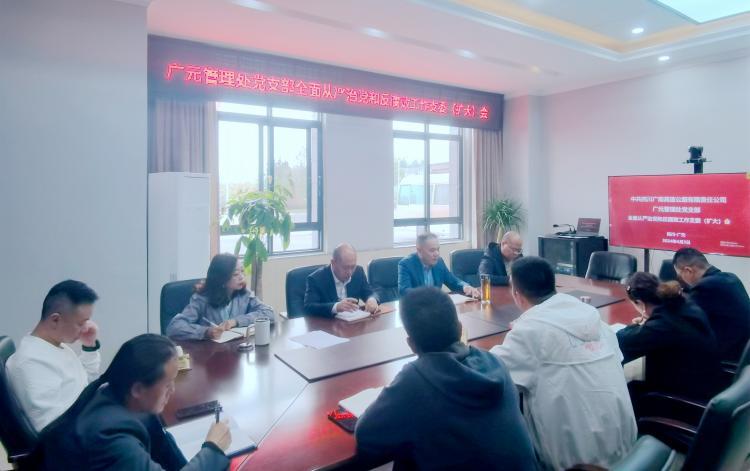 4月3日,广南公司广元管理处党支部召开2024年全面从严治党和反腐败工作专题支委(扩大)会议。会议由支委委员、副处长刘军主持。各党小组长、科室负责人参加了此次会议。