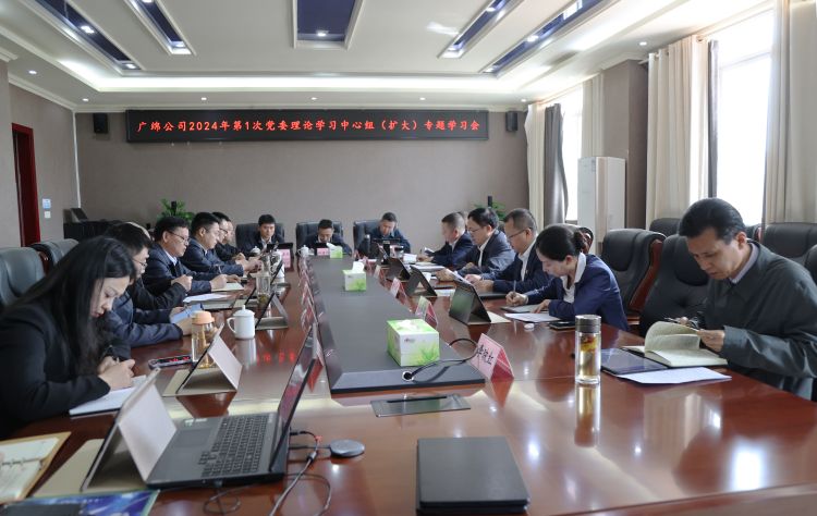 4月2日,广绵公司在210会议室召开了2024年第1次党委理论学习中心组(扩大)专题学习会议,会议由党委副书记、董事、总经理熊朝家主持,公司领导班子及各部门、业主代表负责人参加学习。